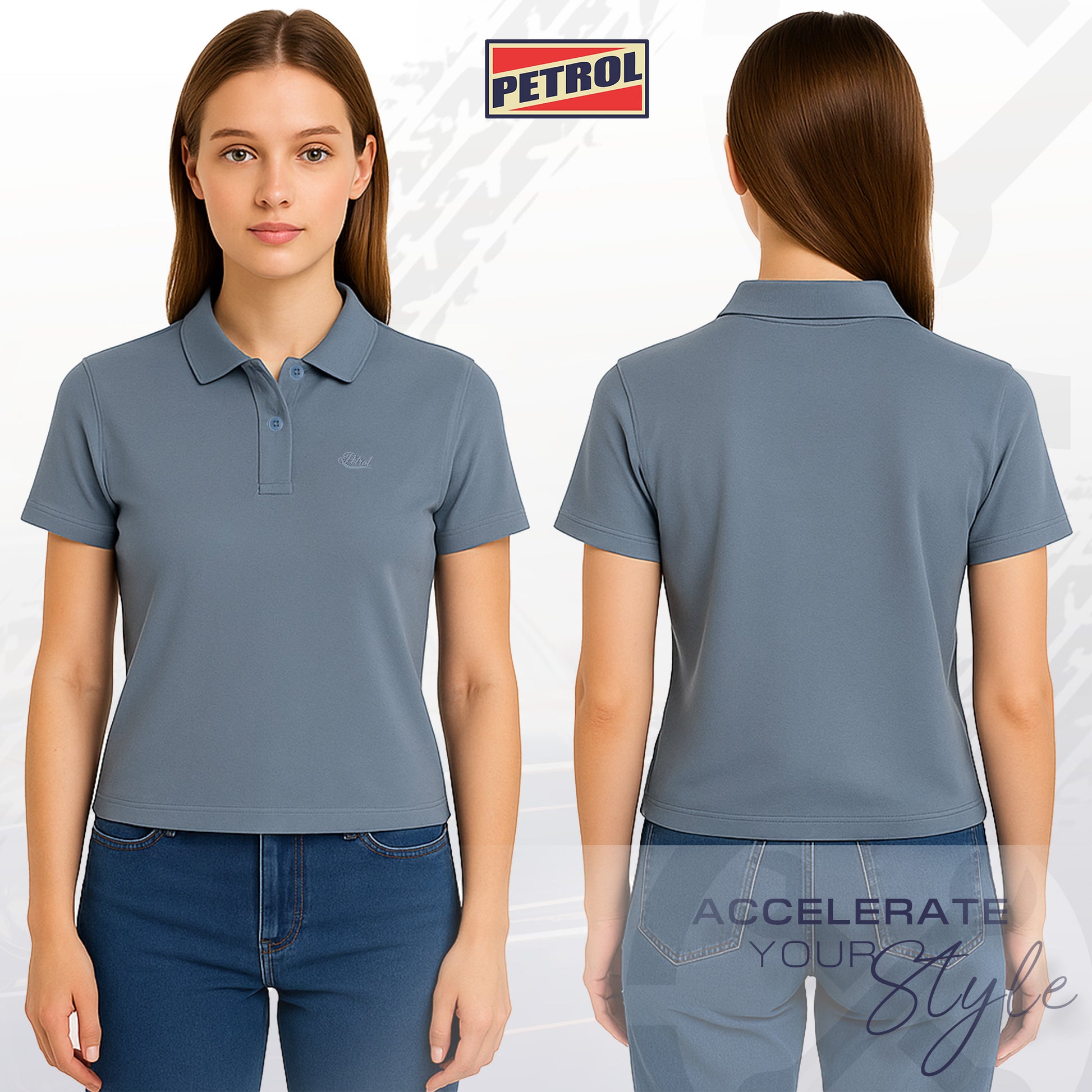 Petrol Ladies Basic Collared Regular Fitting 177853-U (Smoke Blue)