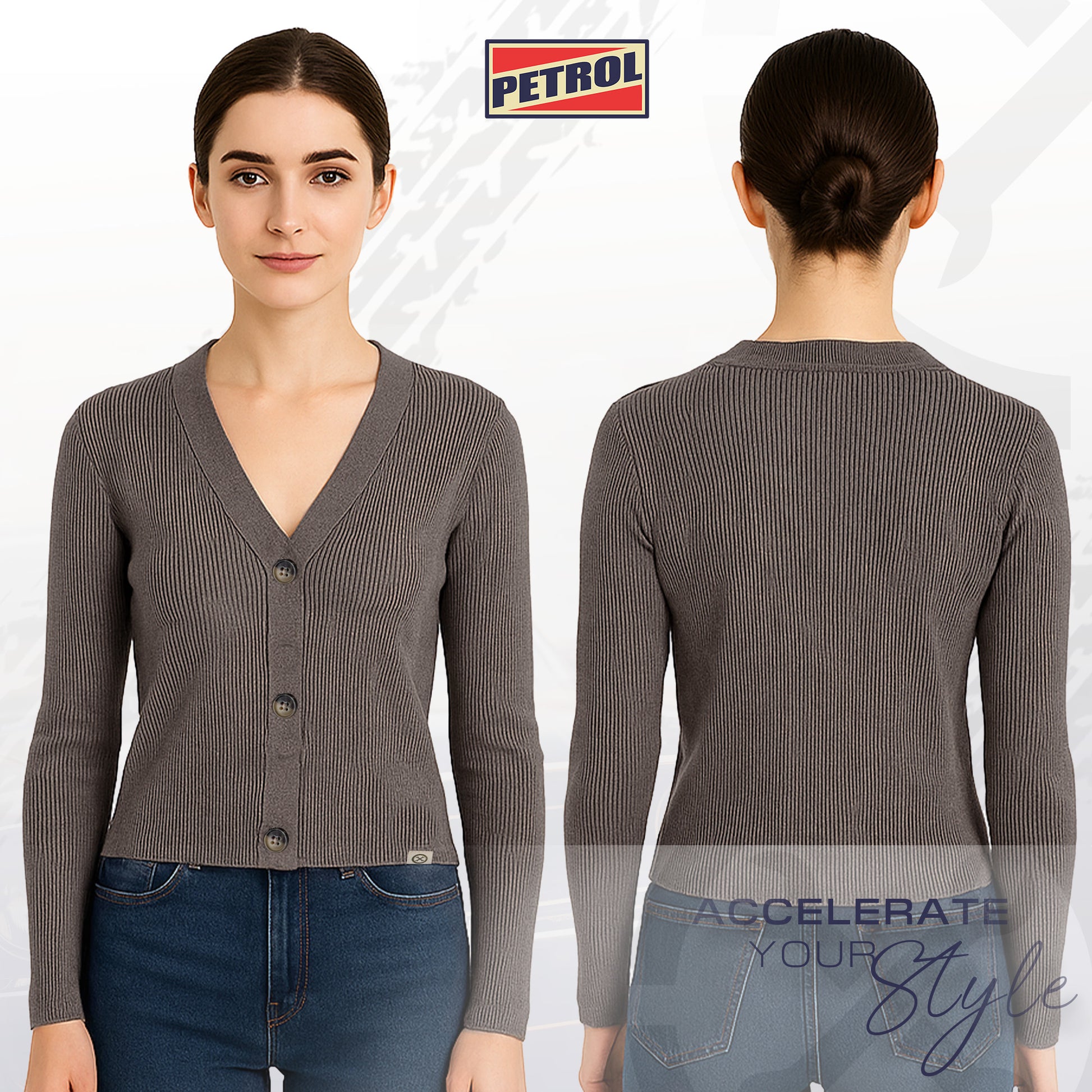 Petrol Ladies Basic Knitted Jacket Crop Fitting 188869 (Brown)