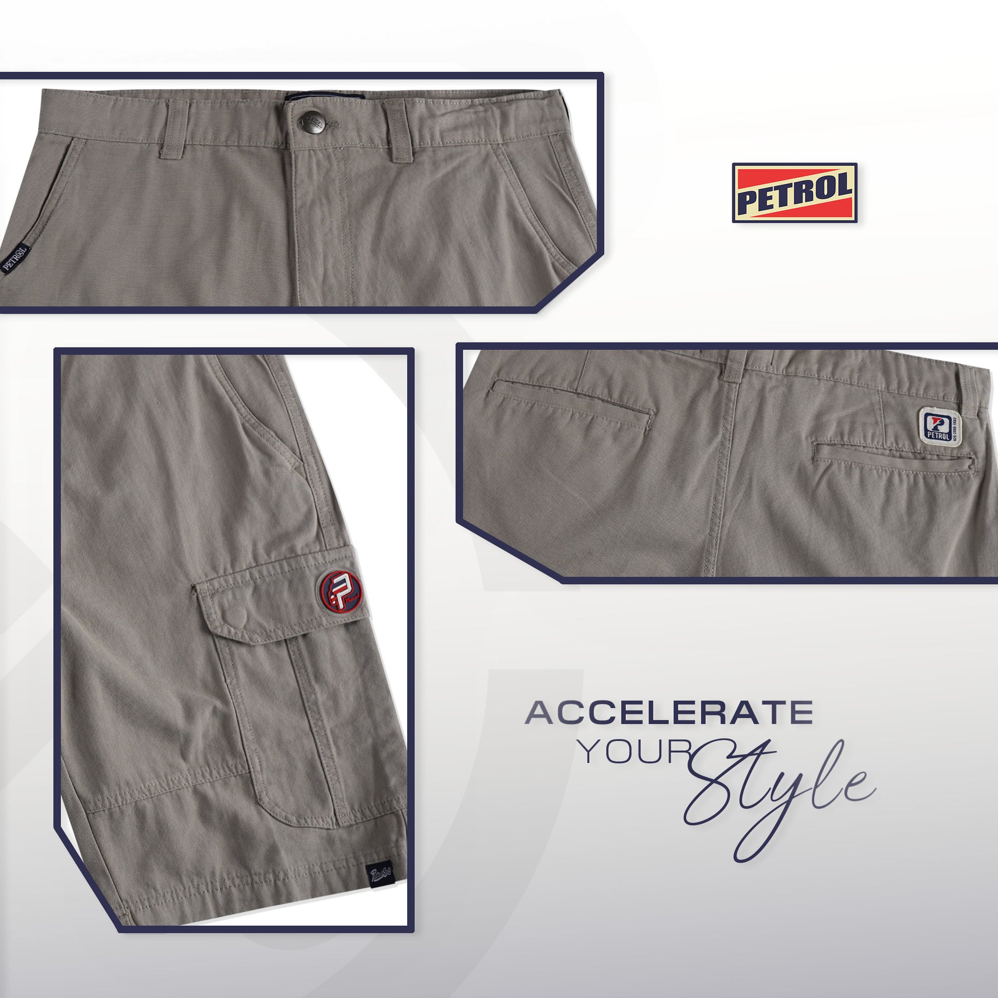 Product Name: Petrol Men's Basic Non-Denim Cargo Short Mid-Rise Fitting 185358-U (Gray)
